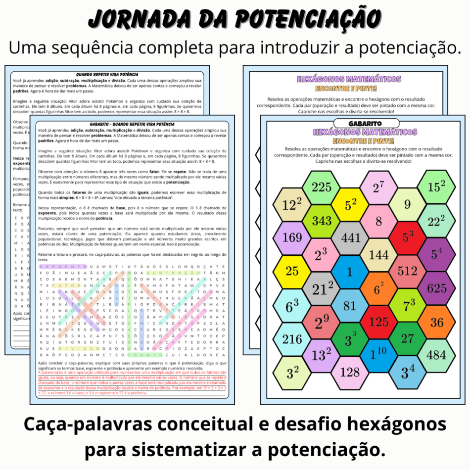 Atividade de Potenciação – Sequência Didática com Caça-Palavras e Hexágonos