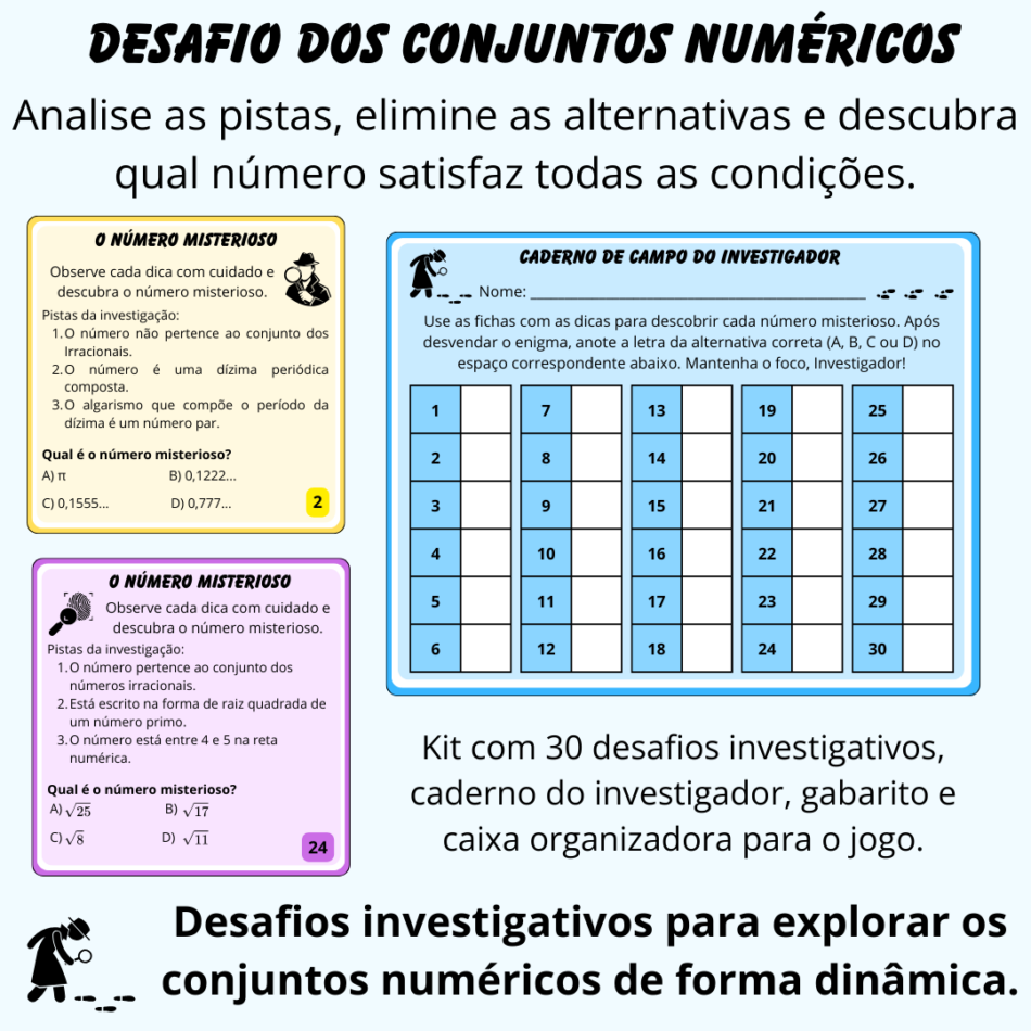 O Desafio dos Conjuntos Numéricos é um material pedagógico investigativo desenvolvido para tornar o estudo dos números mais dinâmico, envolvente e desafiador.